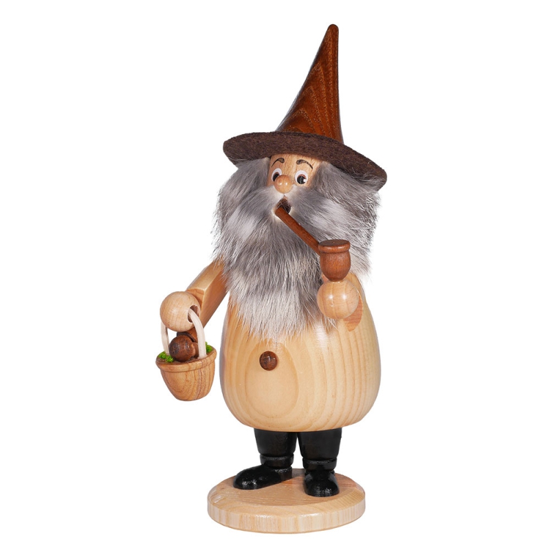 Räuchermann „Wurzelzwerg Pilzsammler natur“ - 19 cm